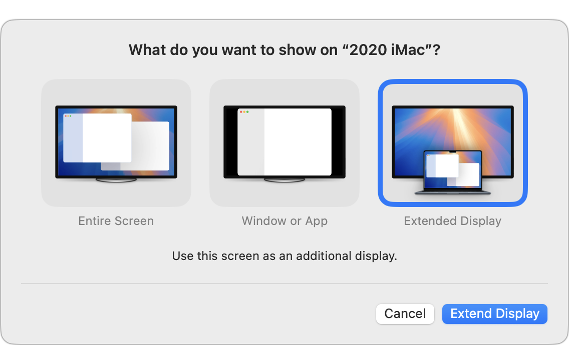 Mirroring is useful for presentations or working with a group, but if you instead want to boost your productivity with additional screen real estate, you can opt to extend your Mac’s desktop to another Mac or TV.